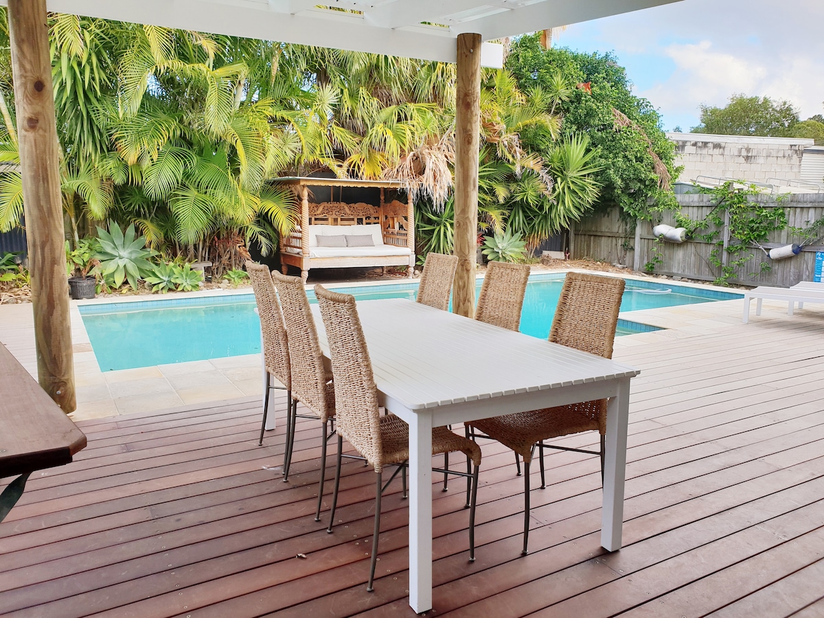 Large three bedroom apartment with pool designed meticulously to create your home away from home. Just a short walk from the the beach this home features a large front deck with ocean views and and courtyard out the back with inbuilt seating and a shaded pergola for chilling out around the pool. All the frills one would need...Nespresso machine, wifi, smart TV a bluetooth Bang and Olsen stereo and a hot outdoor shower. Perfect house for two families or extended family.