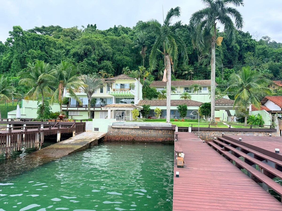 ✨ Casa exclusiva frente ao mar em Angra dos Reis. São 4 suítes climatizadas, sala ampla, cozinha equipada e jacuzzi particular com vista para o mar. Área de lazer completa com piscina, sauna, churrasqueira, forno à lenha, deck com poita e guincho para Jet Ski (Área compartilhada ). Superhost há 5 anos, ideal para famílias e grupos que buscam conforto, privacidade e uma vista deslumbrante. ⚠️ Importante: piscina e churrasqueira fazem parte da área compartilhada do condomínio Porto Mauí.