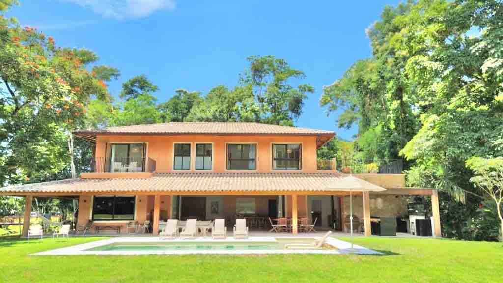 Casa térrea, superavaliada no Airbnb, charmosa e exótica, obra do arquiteto colombiano Simón Vélez. Localizada em condomínio exclusivo com segurança, oferece piscina privativa, área gourmet, cachoeiras, lagos e riachos. Infraestrutura completa: shopping com diversas lojas, marina, diversos restaurantes, sorveterias, mercados e padaria. Espaço único com campo de golfe, trilhas, locação de barcos, hotel Fasano, sauna, quadras de tênis, píer, academia e vista encantadora para o riacho e o golfe.