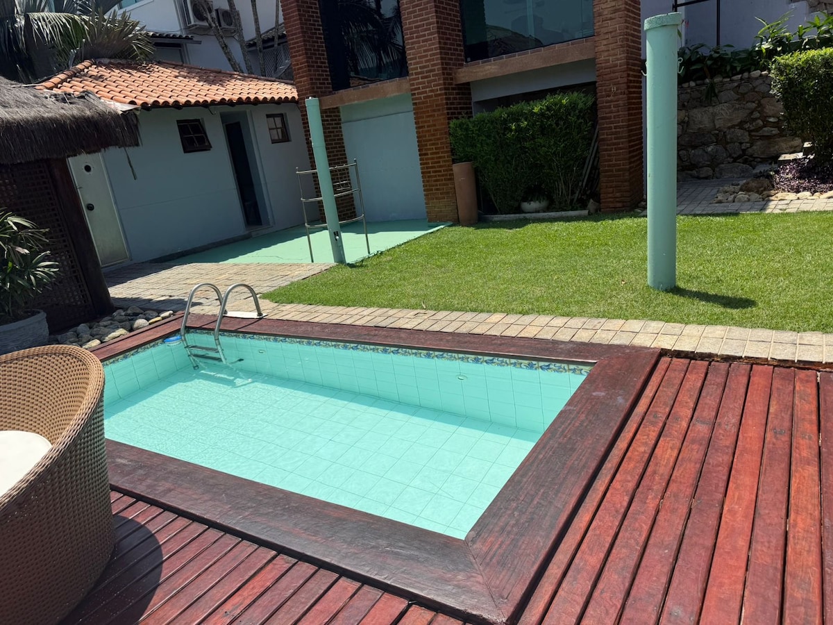 UNICO APARTAMENTO DO CONDOMÍNIO COM 3 SUITES, PARA 2 CASAIS E 4 CRIANÇAS NA 3 SUITE. Espaço entre o mar e a montanha. Perfeita harmonia com a natureza. Lembranças que você jamais vai esquecer. Para receber criança, localizado no condomínio do Frade, o mais bem conceituado da região e ao lado do Hotel Fasano, ar condicionado em todo o imóvel, área comum (compartilhada) com piscina, sauna, churrasqueira, praia a 200 passos do imóvel, e amplo gramado em frente ao imóvel. Wi-Fi e Net