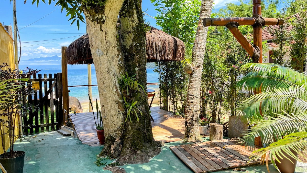 Experience the charm of Ilha Grande in this cozy chalet, just a 4min walk from the main pier! Located in the lower part of Abraão, it offers easy access to bars, restaurants, and tour agencies. Nestled in a private condo with fruit trees and a beautiful shared garden, it’s the perfect place to unwind. The chalet features 13m² of indoor space + a 6m² private balcony with a table, chair, and hammock. It also includes a private kitchenette and bathroom. An ideal retreat for comfort and convenience!