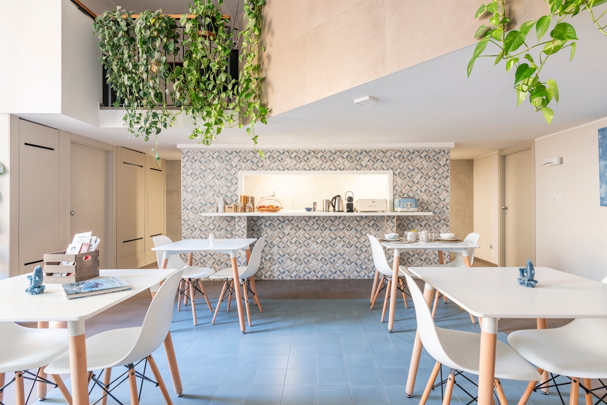 Benvenuti in una raffinata suite per due adulti, nel centro di Salerno. La camera con wifi è spaziosa, luminosa e dotata di bagno privato, ideale per un soggiorno rilassante tra mare, cultura e sapori locali. A 400 metri dalla spiaggia, dal Duomo e dalle principali vie dello shopping e della movida A 10 minuti a piedi dalla stazione ferroviaria A 1,2 km dalla stazione marittima, e dal Porto Masuccio salernitano, punti di partenza per i traghetti diretti verso Amalfi, Positano, Capri e Ischia.