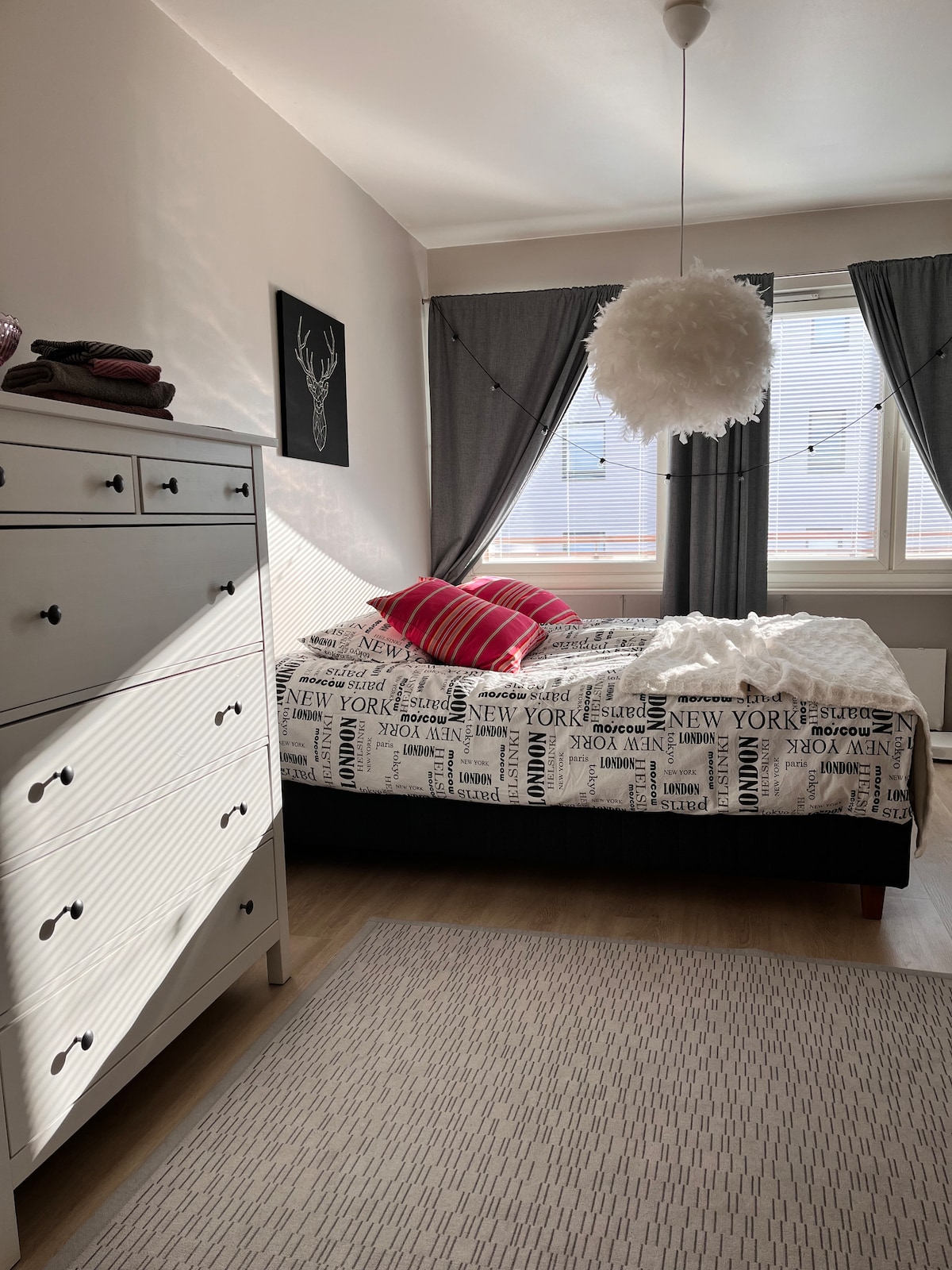 IG: @apartmenthelmi Charming Apartment Helmi is located in the city center of Rovaniemi. The accommodation offers free WiFi, a well-equipped kitchen, and a private sauna. The bedroom features a double bed, and the expandable sofa in the living room provides additional sleeping space for two. Helmi is located next to the Aalto Centre. A grocery store is located on the ground floor of the building. 6-minute walk from the Santa Claus Bus stop, providing direct access to Santa Claus Village.