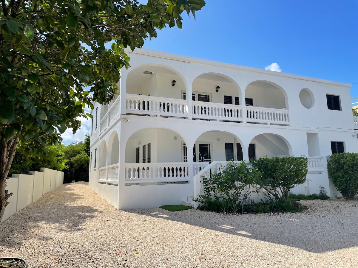 Bring the whole family and stay at this Breezy home located in Sandy Ground Village, surrounded with indigenous plants, palm trees and coconut trees. It has WiFi, TV, washer/dryer, A/C units and, table wares. Enjoy a sunbathing, a walk on the beach or go snorkeling along the reef. When the sun goes down, slip away to some of the best bars and restaurants in the village, such as Elvis and the Love Shack and many more.
