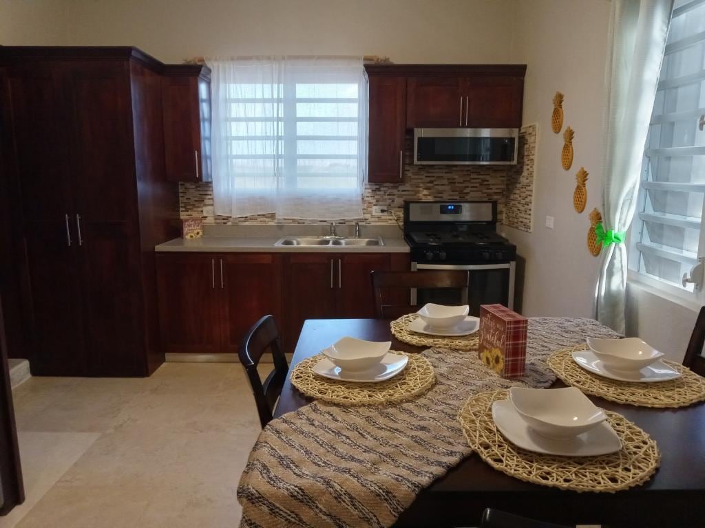 Lovely, newly renovated, very clean 1-bedroom apartment. Spacious bedroom, king-sized bed. New stainless-steel appliances. Full fridge, freezer, stove. Custom cabinetry, stone tile. Washer and dryer. Comforts of home. Pots, pans, kitchen items, coffee maker, toaster. WI-FI. Television. Centrally located. Fresh fruit stand a few feet away. Minutes from Rendezvous Bay Beach and 30+ turquoise-colored beaches. Restaurants, entertainment, historic sites nearby. Parking, gated. Near airport, ferry.