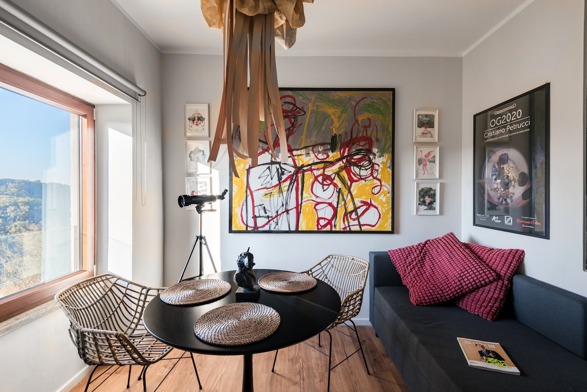 Nell’antico borgo di Vallerano, un ampio e luminoso appartamento composto da due ampie stanze, ingresso con piccolo ripostiglio e bagno, che una architetto-fotografa ha progettato per se stessa, arredato con cura per i particolari e per l’organizzazione degli spazi. Un ambiente accogliente e curato dove rilassarsi, dedicarsi alle proprie attività e partire per le escursioni nella Tuscia, consultando le guide e le informazioni sui principali luoghi di interesse disponibili nell'appartamento.