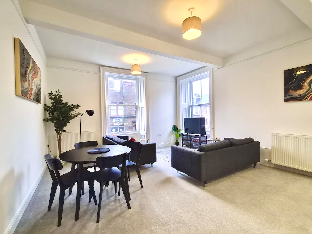 Welcome to my lovely holiday home in Arbroath, the perfect spot to explore the beauty of Scotland's east coast. Spacious, super comfortable and fully equipped with everything you need, this Victorian apartment has been lovingly restored in mid-century modern style. Situated on the first floor in a quiet street within what is described as the nicest part of town, it is ideally located to walk to all of Arbroath's main attractions including the mainline railway station. Licence no. AN-01495-F