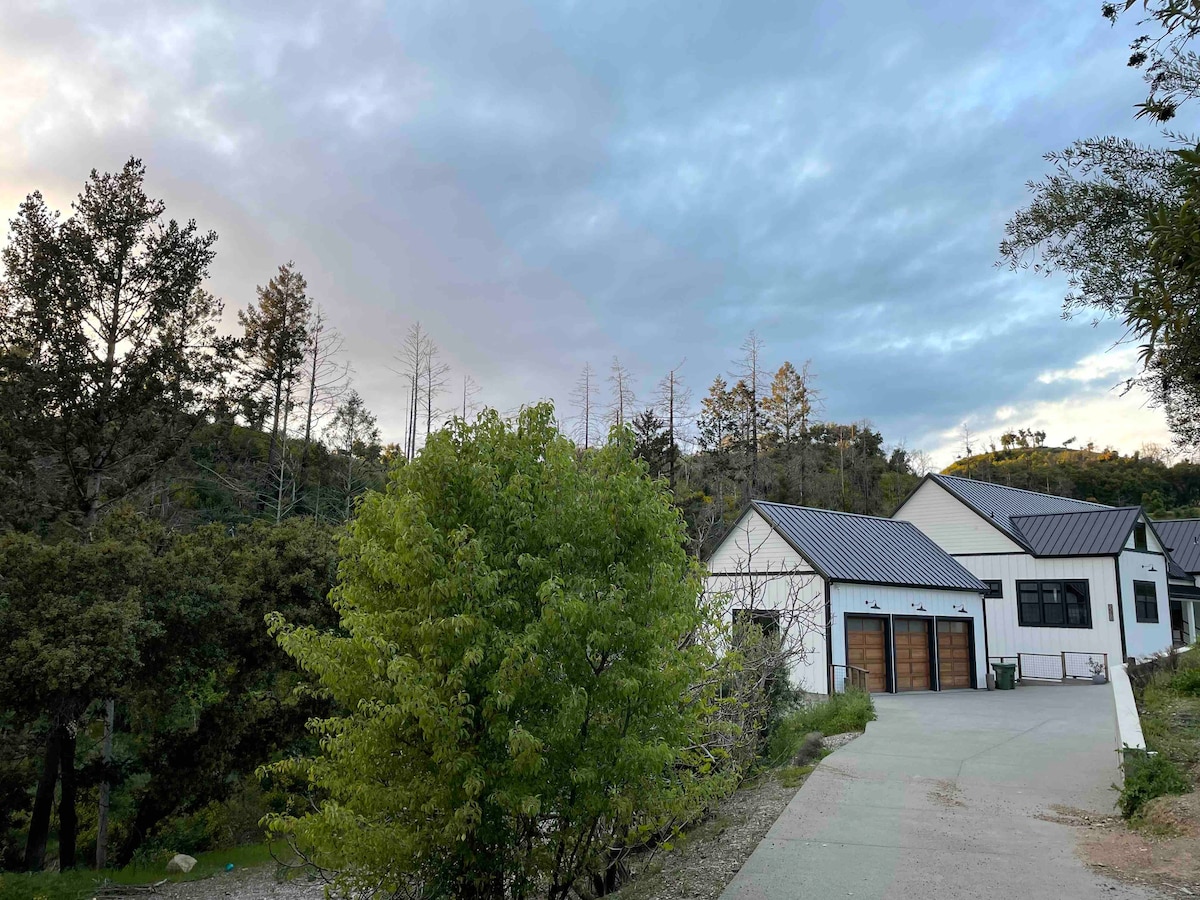 Beautiful new cottage with lots of light, swing, and gas fireplace. Large open space with private deck looking out at Mt St. Helena. In the evening, turn on the outdoor string lights and relax on the swing under the huge oak tree before sinking into the memory foam king size bed. In the morning there is pour over coffee and robes so you can sit outside and sip your coffee. Perfect place to stay for a while, or have a romantic weekend.
