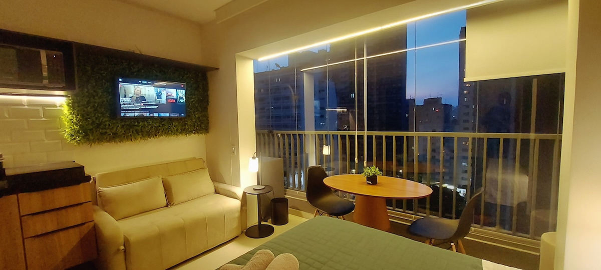 Esse pequeno Studio tem tudo o que você busca! Localização excepcional: Próximo a estações de metrô, conveniências e estacionamentos. Alta comodidade: Cozinha com microondas, cafeteira e frigobar (sem fogão), Smart Tv 4K 50’’, alexa, enxoval completo, cama casal e internet de 300 mega. Melhores restaurantes, passeios e pontos turísticos de SP ao lado!