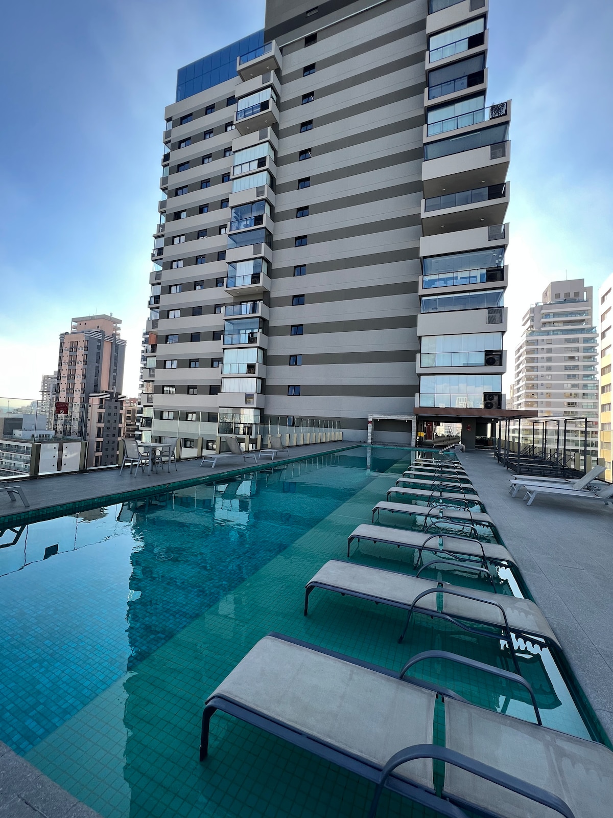 Apartamento Studio completo, novo, mobiliado com estilo, 30m2, andar alto, e toda a infraestrutura completa do condomínio: ACADEMIA ACADEMIA FUNCIONAL BICICLETA COMPARTILHADA BICICLETÁRIO COWORKING COM SALA DE REUNIÃO DUCHA ESPAÇO FESTAS ESPAÇO GOURMET E GRILL ESPAÇO HOME THEATHER ESTACIONAMENTO ESTAR EXTERNO GUARDA-ENTREGAS HALL SOCIAL JARDIM CONTEMPORANEO LOBBY LOUNGE COBERTURA E EXTERNO PISCINA PORTARIA 24H PRAÇA MIRANTE SALA GAME SOLARIIUM LAVANDERIA COLETIVA SEGURANÇA 24H