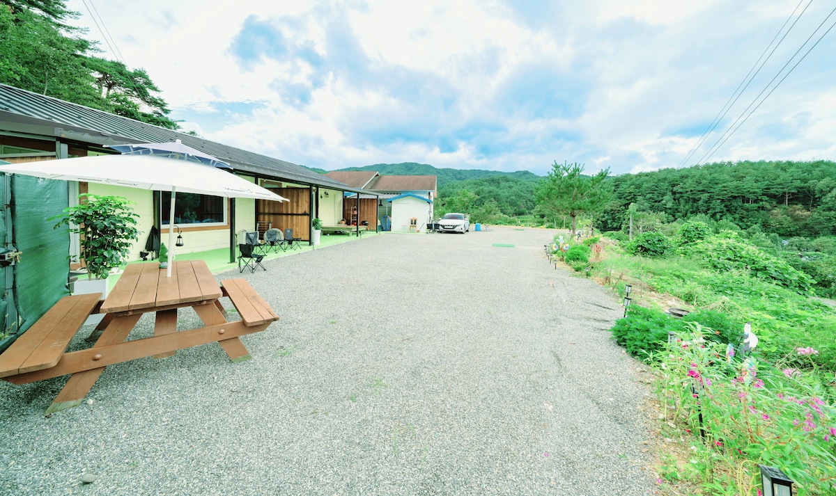 별빛하우스는 개성 넘치는 스타일을 자랑합니다. 넓은 자연속에 새로 신축된 건물로 침실에서 큰 통창으로 전원의 수채화를 즐기며 밤하늘의 별빛을 볼 수 있고 주차는 숙소 바로앞에 안바당은 완전 넓고 프라이빗 온전한 자유로움과 편안함을 주는 자연속 풍경 온실처럼 신축된 바베큐장에서 즐기는 자연도 남다르고 거실과 중정도 모두 삼중창이라 쾌적하고 개방감은 최고!! 바람불고 추운날엔 중정에서 불멍을 즐길수 있고 하조대 해수욕장도 가까워 전망대 산책길이나 해변 산책, 스쿠버나 서핑, 까페나 브런치를 즐기실 수 있습니다