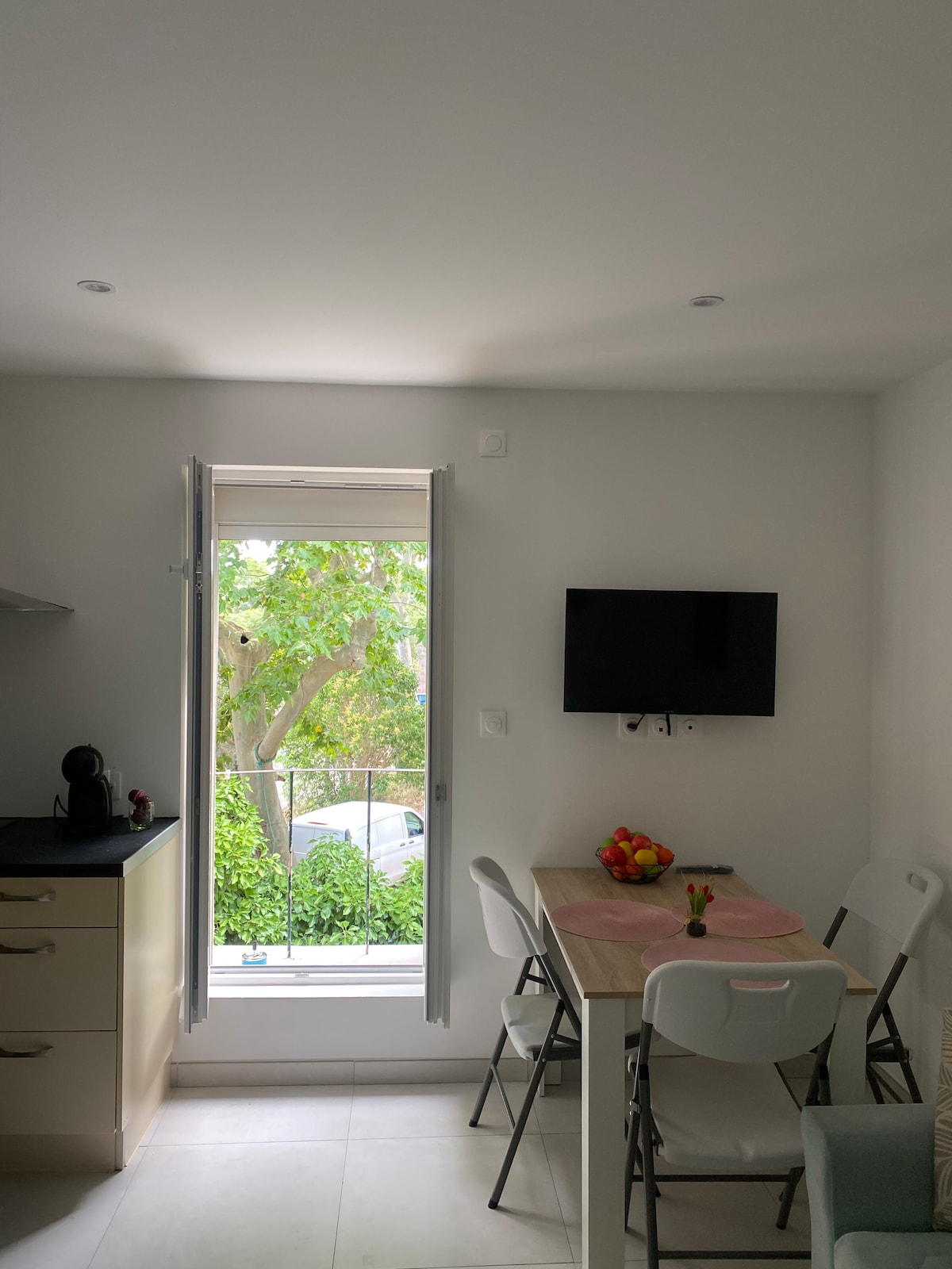 Cabane au sein d'un domaine arboré Mont St Clair, avec une terrasse vue sur la ville, le port et la mer à l'abri des regards en 2 espaces privatifs reliés par un escalier extérieur. Niveau inférieur fermé : Chambre 12m2 avec lit 160, toilettes Niveau supérieur : Salle d'eau douche, cuisine d'été de 6m2, ouverte sur une terrasse de 8 m2 avec table Buanderie commune avec lave linge et sèche linge Accès piscine collective ( non chauffée) de 09h à 19h. Parking gratuit sur place pour 1 véhicule