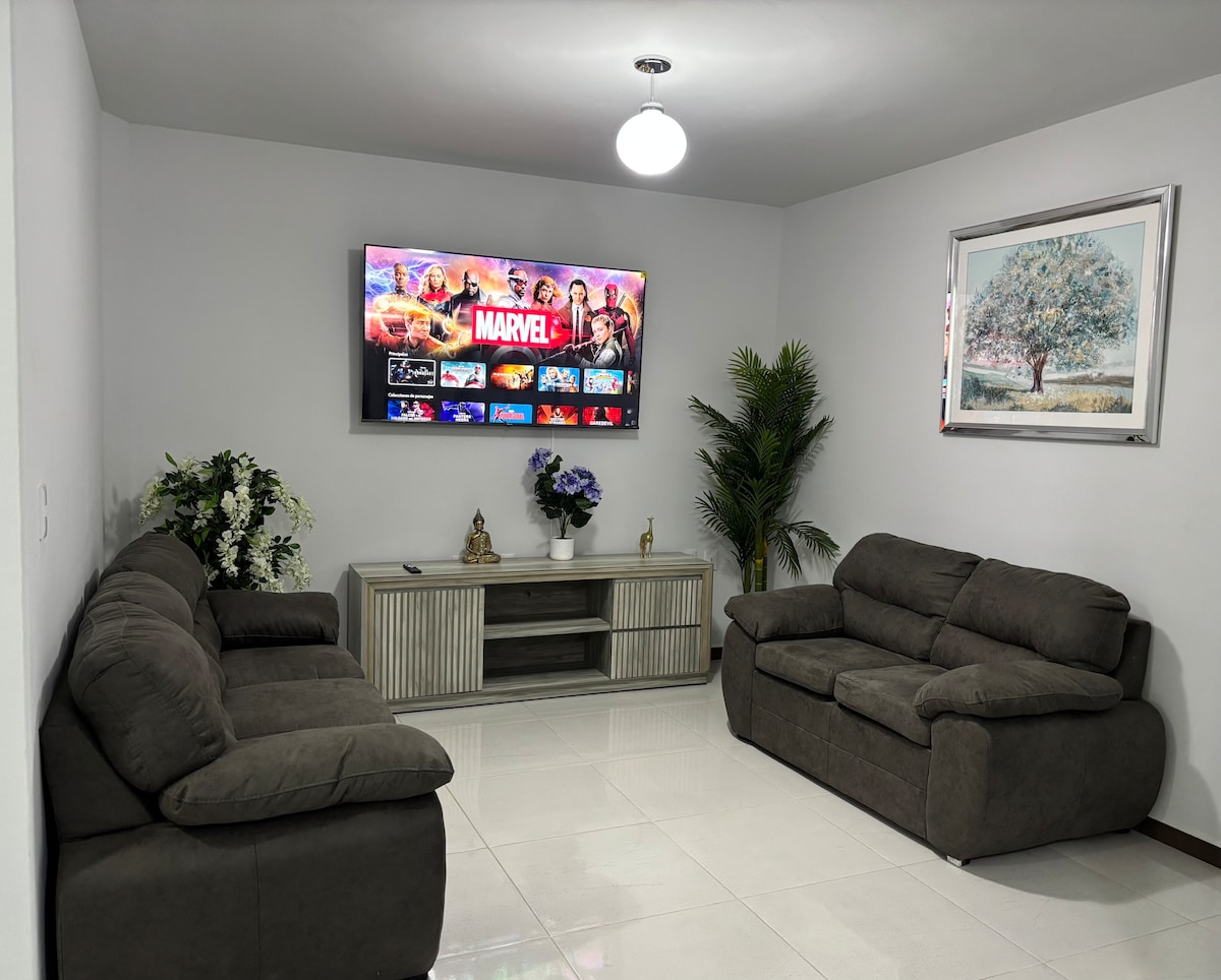 Relájate con toda la familia en este alojamiento donde la tranquilidad se respira. Ubicado en lugar estratégico a 5 minutos del aeropuerto y 20 minutos del centro de la ciudad. Contamos con transporte y visitas guiadas por las principales zonas turísticas (opcional).