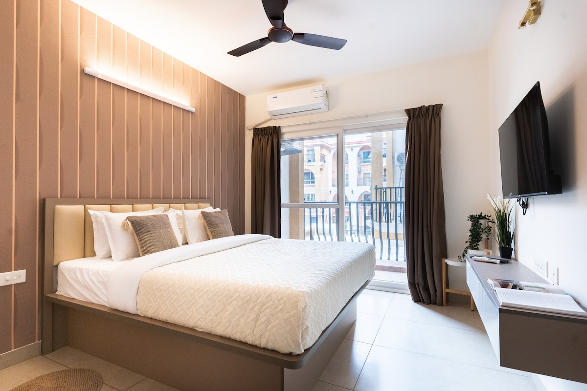 ✨🌴 Welcome Home! at Apt Tranquil - 615 ! 🏖️🌊 Claim your peace & take a holiday at our intimate & stylish 1-bedroom retreat. ✨ What You’ll Love ✨ ✅ Located in Arpora - Anjuna Road (Acron Sea Winds) 📍 900 m – Baga Beach 📍 3 km – Anjuna Beach 📍 4 km – Vagator Beach ✅ Apt size : 810.74Sq.Ft ✅ Bluetooth Speakers & Board Games ✅ Romantic Wrap Around Balcony ✅ 1 Dedicated Parking ✅ 24 x 7 Security ✅ Complimentary housekeeping ✅ 2 Olympic Size Pools & 1 Baby Pool / Gym / Sauna