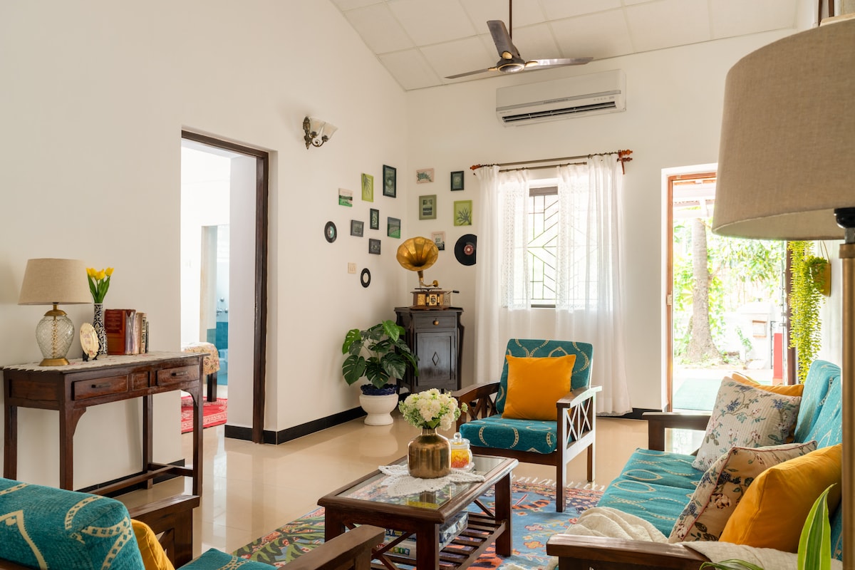 Discover a world of peace & inspiration at The Pause Project, a cozy romantic Airbnb nestled in the middle of a lush forest in Siolim, North Goa. Perfect for solo travelers, couples & families, it offers a space to slow down. Immerse yourself in books, music, travel memories & a lived-in ambience that feels like home. Cook a meal in the kitchenette or explore Siolim, known for its cafes & bars, with Anjuna, Vagator, Assagao & Morjim, Mandrem beaches 15-20 min away & 35 min from MOPA airport.