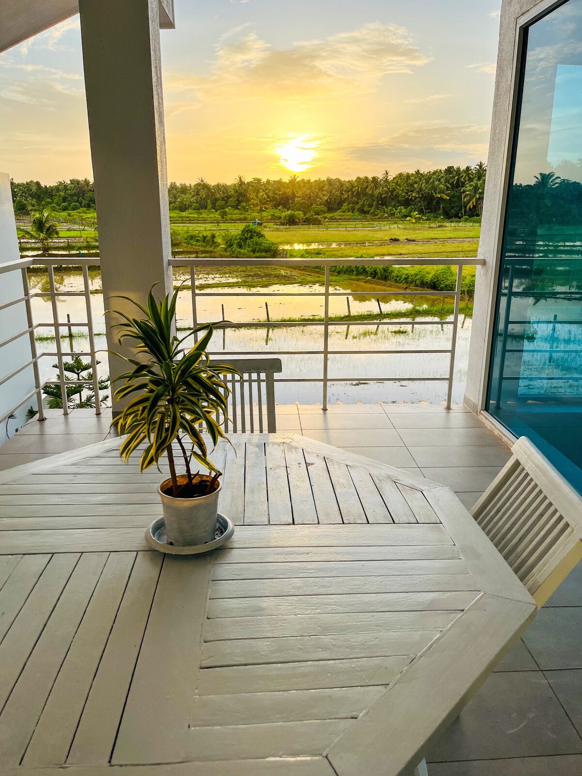 Overlooking paddy fields and lush green background, this peaceful apartment is located in the heart of North Goa. Just a stone's throw away from the beach and the madness, yet close to mother nature. Offering the best of both worlds, this apartment caters to all age groups and at any time. Located on the first floor, overlooking the swimming pool, the views are second to none. It is a fully serviced apartment for guests convenience and pleasure.