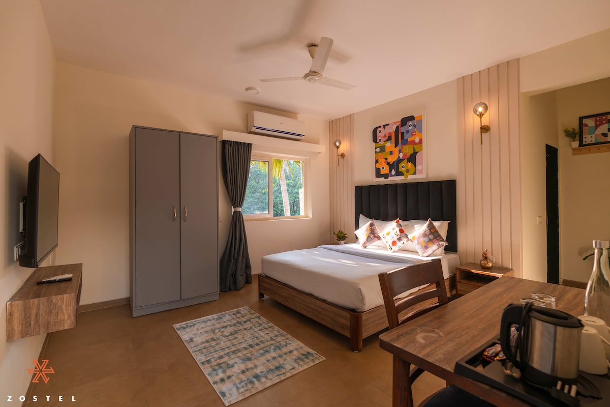 A bed in a petite mixed dorm with AC, a private locker, and a shared washroom outside. Zostel Goa (Morjim) is a high-energy, social hostel with a vibrant party scene. Expect music, events, and late-night fun as you meet fellow travelers at our in-house bar, poolside gatherings, and buzzing common areas. Whether you're here to party, chill by the beach, or explore Goa's nightlife, this is the perfect spot for an unforgettable experience.