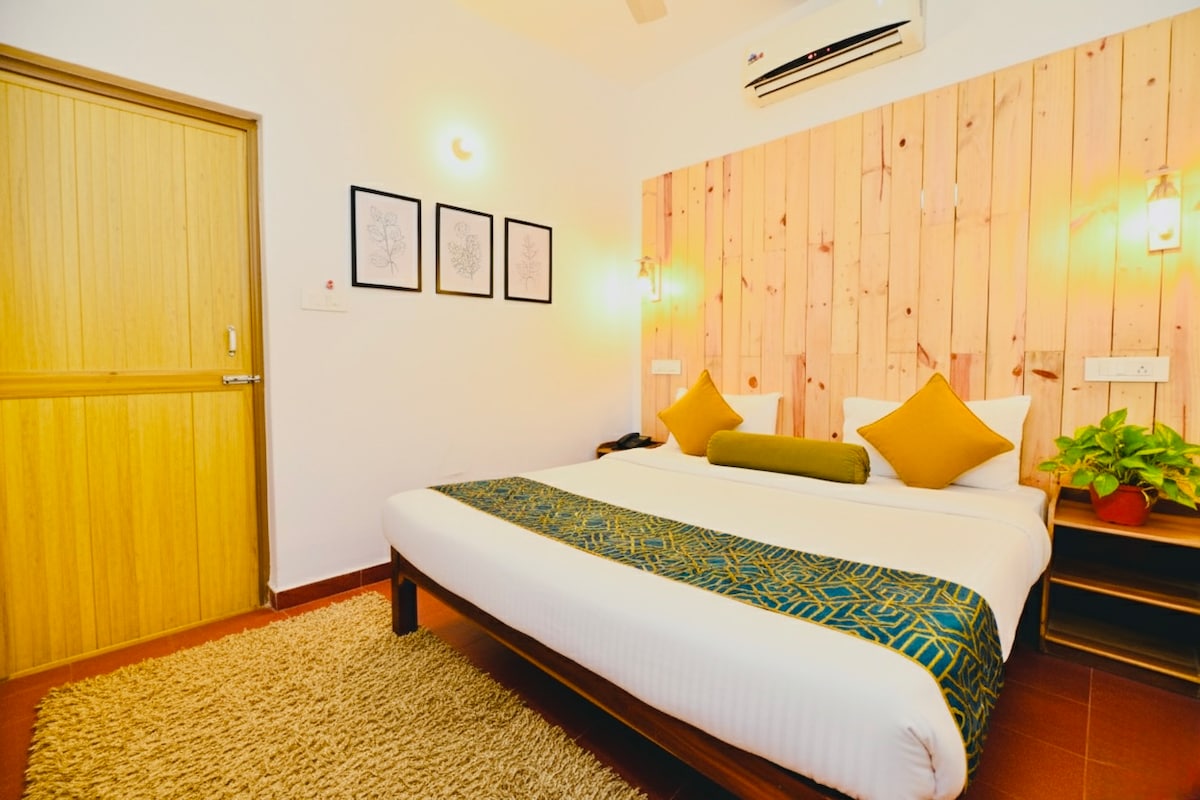 Our Signature Room is a design-forward space featuring a King bed, an open to sky bathroom, and a bathtub blending comfort with thoughtful aesthetics. The room is equipped with high-speed Wi-Fi, air conditioning, and a smart TV for a seamless stay. Located just 1.5 km from the beach and 900 meters from the local market, the property offers easy access while remaining a peaceful retreat. Our spaces are intentionally designed to foster community, creativity, and authentic travel experiences.