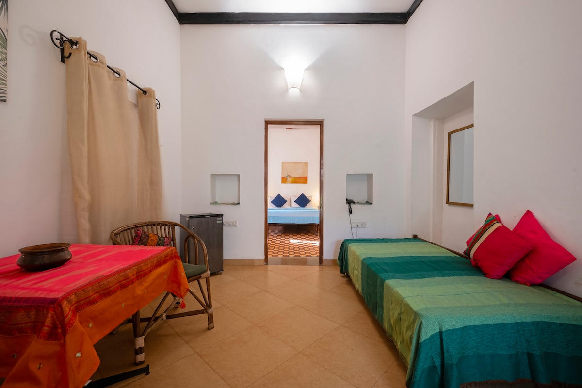🌴 Welcome to Your Luxurious Goan Getaway! Located in the heart of Siolim, our Premium Suites offer the perfect blend of comfort and convenience. Situated just minutes away from Goa’s top hotspots, including Thalassa, Kiki's, and all major cafés and pubs, The stay is ideal for those looking to explore the vibrant nightlife and serene beaches of North Goa.