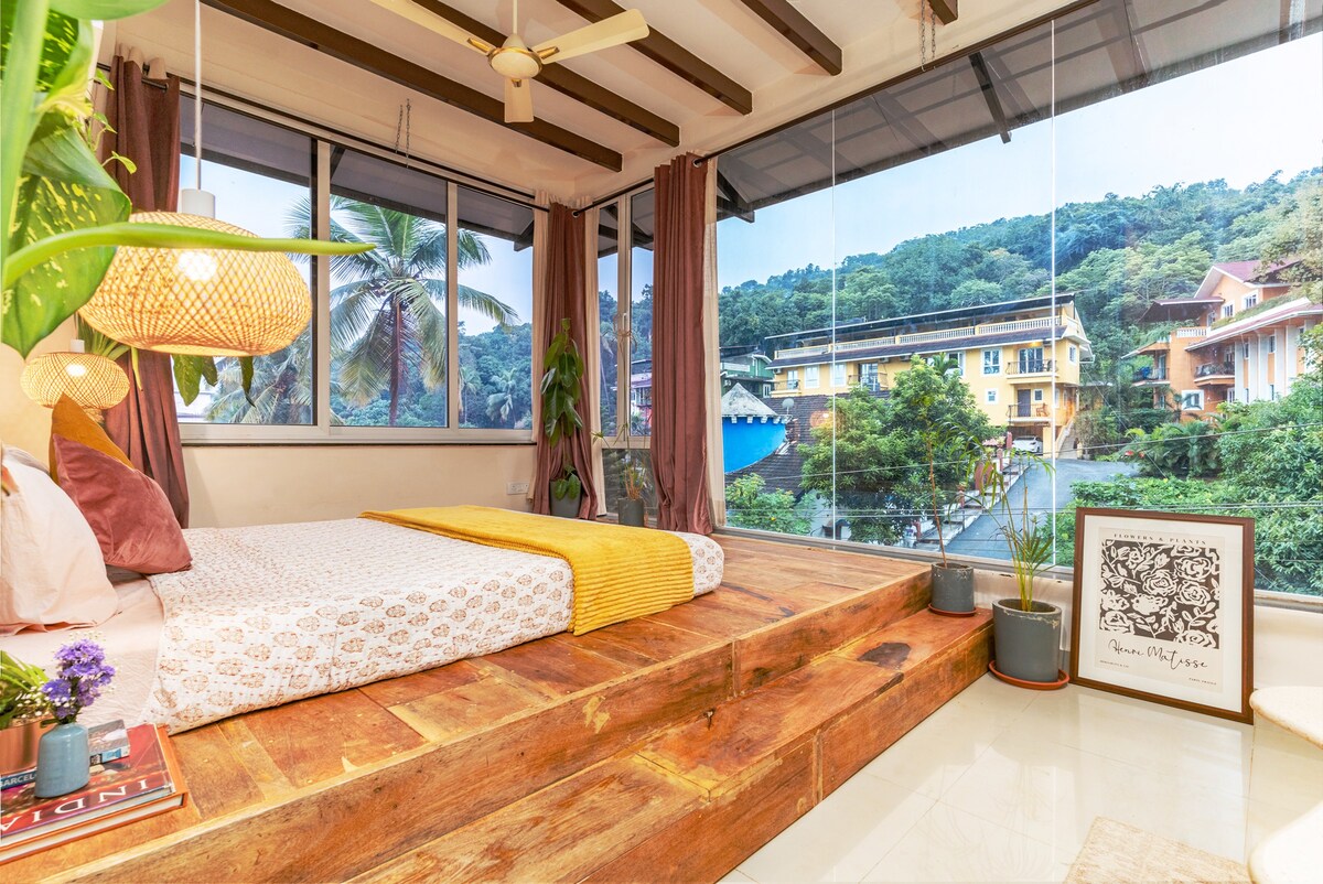 Discover a world of peace & inspiration at The Pause Project, a cozy romantic Airbnb nestled in the middle of a lush forest in Siolim, North Goa. We are at a 35 min drive from North Goa airport & 10-15 mins from bustling scenes of Anjuna, Vagator, Assagao. Perfect for solo travelers, couples & families, it offers a space to slow down. Immerse yourself in a dreamy, luxurious space amidst nature and a beautiful view of a modern village neighbourhood.