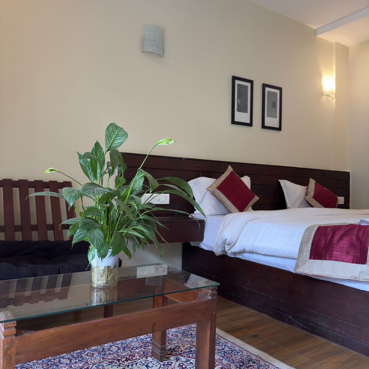 Your perfect beachside escape in Vagator awaits, ready to fill your heart with peace and unforgettable memories. 270 ft² / 25 m² private room 3 min walk to Vagator Beach ☞ Walk Score 99 (walk to Vagator Beach,chapora fort, cafes, dining, night clubs) ☞ Swimming pool ☞ Private balcony ★" Excellent location — close to beach & restaurants" ☞ Dimmable lights ☞ High-speed WiFi ☞ Parking On-site ★ “The interior were great and gave such a cozy vibe” ★"It's located quite close to the beach".