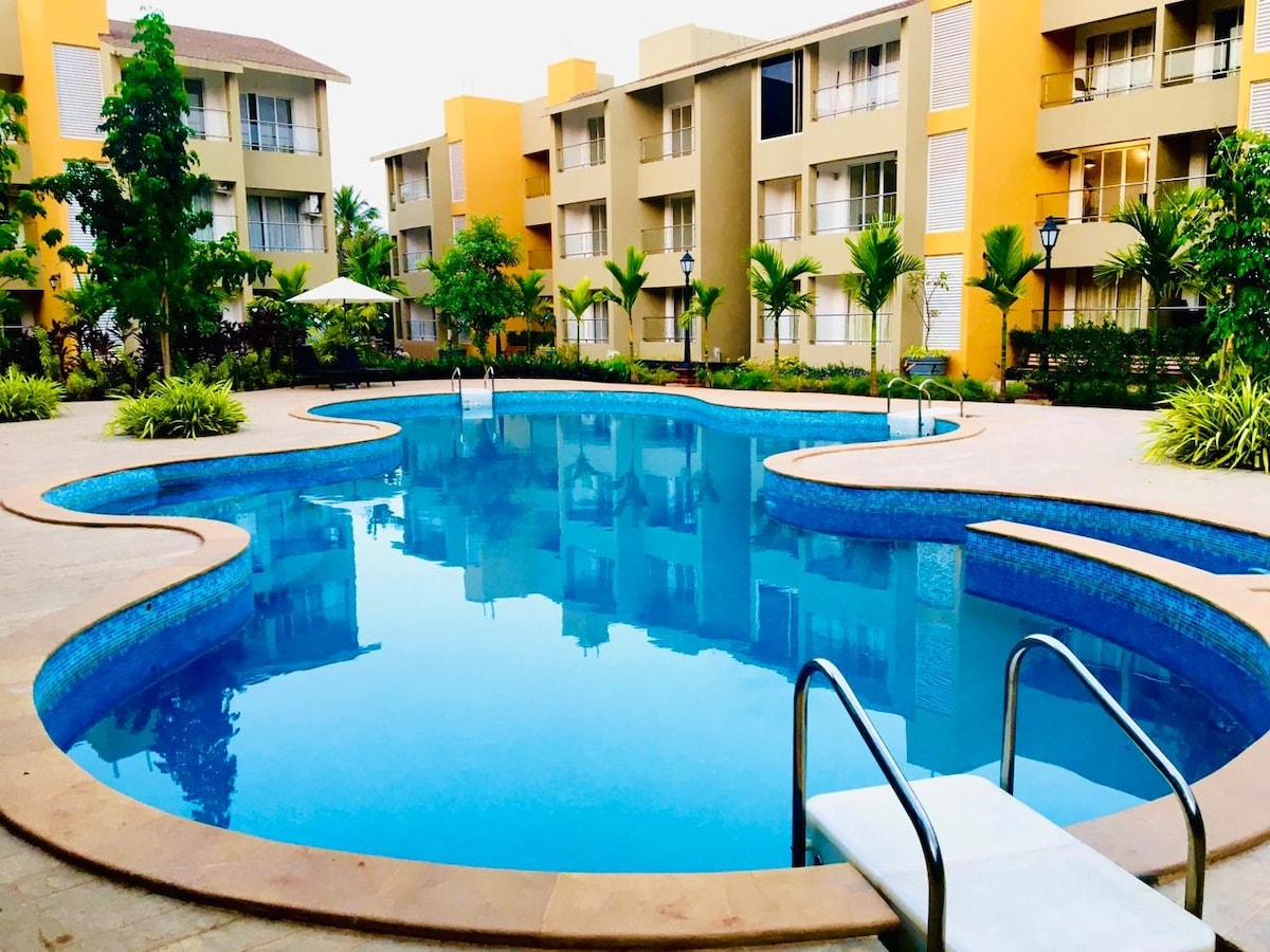 Welcome to Bacchus Homes! Discover the epitome of Luxury living at our stunning 2BHK, Ground Floor apartment, lavish living room with access to fully equipped kitchen, 2 bathrooms and 3 pool facing balconies, Fast Wi-Fi that caters to all your needs. It is only a five-minute walk from Anjuna beach. The society has 24/7 security and CCTV cameras are installed everywhere. It is very closed to famous Restaurants, Clubs and Bars. Sunburn festival is at a walking distance from the society.