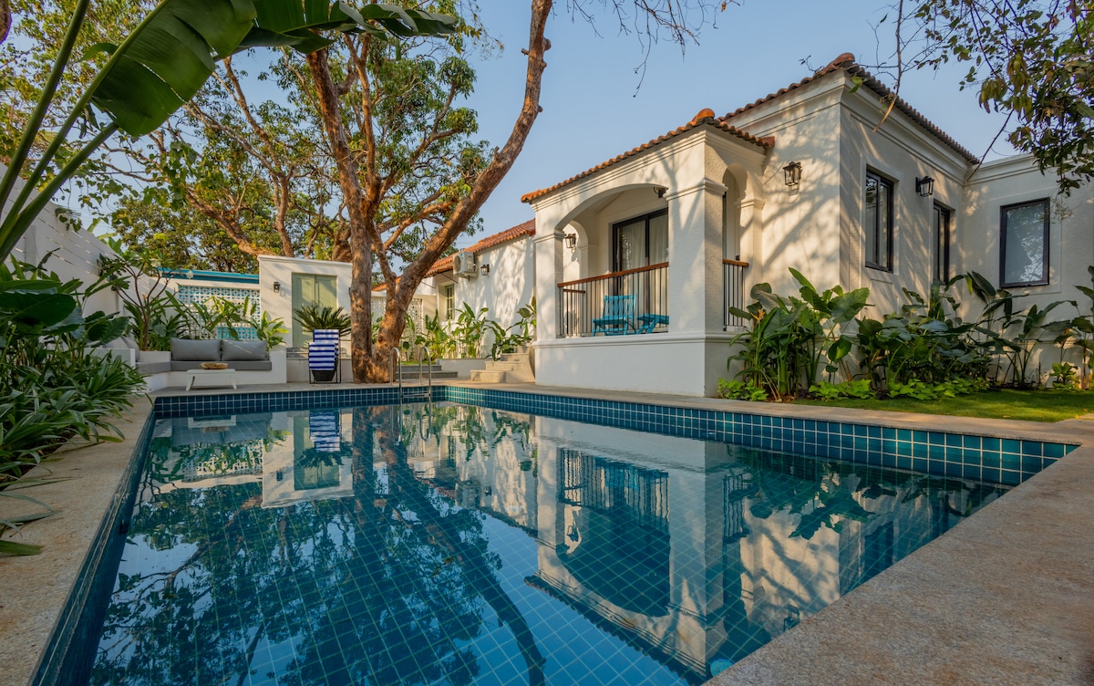~Family-Run Indo-Portuguese Heritage Estate~ Over 100 Five-Star Reviews | SuperHost Since 2017 Casa de Tartaruga™ is a 75-year-old Indo-Portuguese estate in quiet Assagao, North Goa. Carefully restored, the villa preserves old-world charm, high ceilings, and lush tropical gardens with contemporary comfort. Moments from beaches and fine dining, yet privately tucked away — designed for families, intimate celebrations, and refined stays. A private estate for those who value heritage and privacy