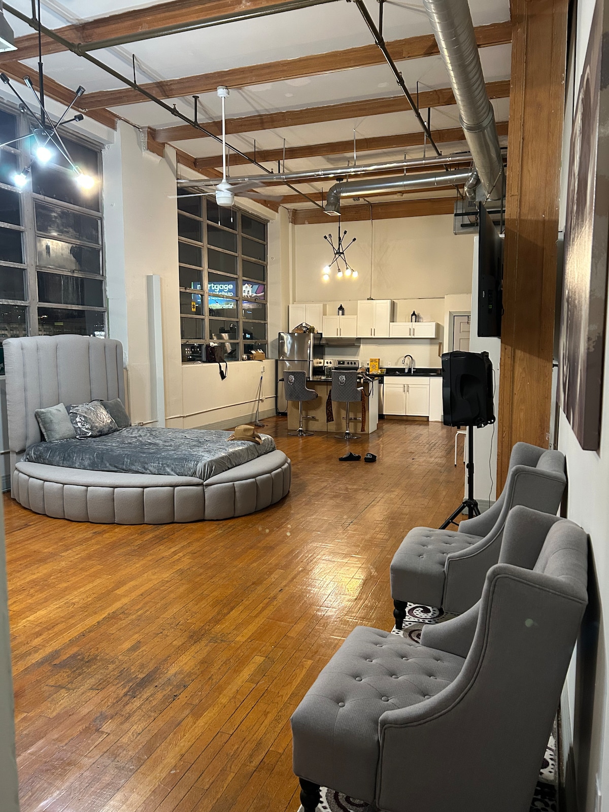 Our loft is situated in a vibrant neighborhood in the heart of Downtown Detroit. The building, a former coat factory, has been converted into industrial-style lofts. Please note that due to the nature of the building, sound may permeate the walls and guests may hear their neighbors at times. If a completely noise-free stay is a priority, this loft may not be suitable for your needs. Additionally, this space is also well-suited for photo shoots, content recording, and business meetings.