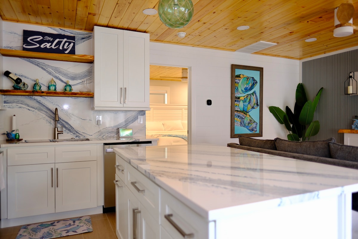Aloha and welcome to our island home. "Ohana" is Hawaiian for family & that is who you are when you stay w/ us. The 2 bedroom 1 bath suite is located on the second floor w/ a peek of views of the Gulf from the living room, 2nd bedroom & your outside deck. We also have a 3rd floor shared deck guests utilize to watch the sun sink into the earth over the Gulf of Mexico or enjoy soaking up the sun. You are 150 feet from stepping into the pristine white sands & turquoise waters of the Gulf.