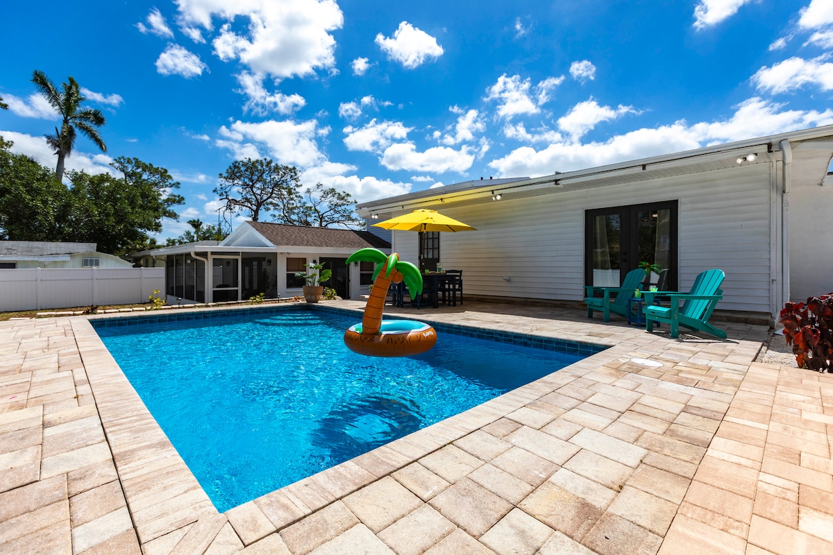 Welcome to the Palms of Bradenton! This spacious home accommodates up to 14 guests, offering 4 cozy bedrooms, 2 modern baths, and plenty of space to unwind. Dive into the refreshing heated salt water pool, relax on the patio, or challenge your friends in the game room with foosball, a pool table, and arcade games. You'll be under 10 minutes from AMI beaches and 6 miles to IMG Academy! Conveniently located near great restaurants and grocery stores, this is the perfect spot for your next getaway.