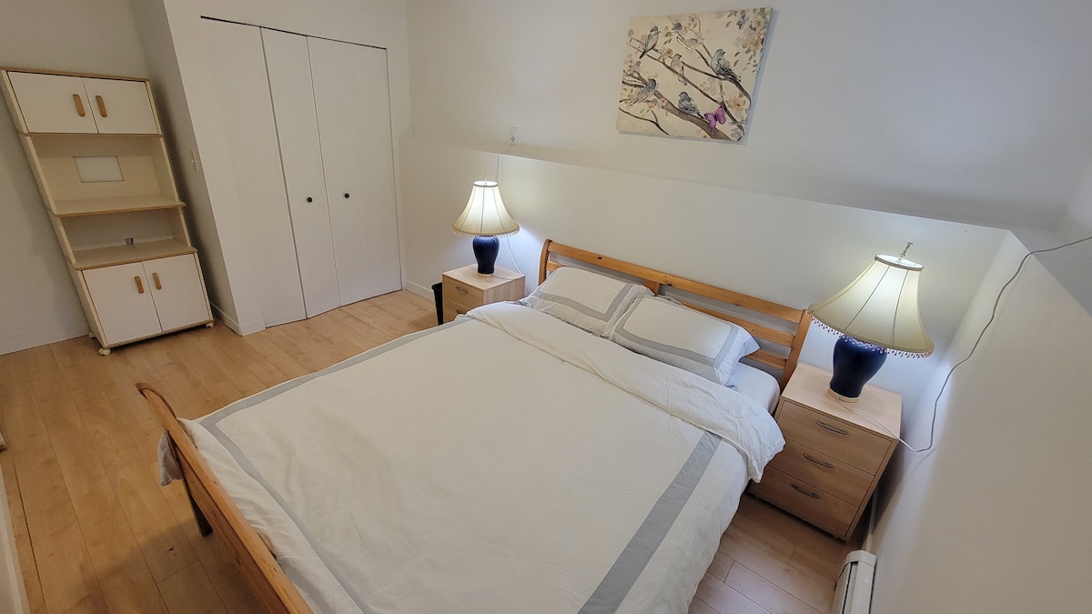 Welcome to Hideaway Suite! This modern, open-concept suite in New Westminster offers 1 bdrm, 1 bath, an office nook, big screen TV, cozy fireplace, and a fully equipped kitchen with in-suite laundry. Located in a quiet neighborhood and just a 10-minute walk to the SkyTrain, it’s perfect for both leisure and business stays. Enjoy a comfortable and stylish experience at the Hideaway Suite—book your stay today!