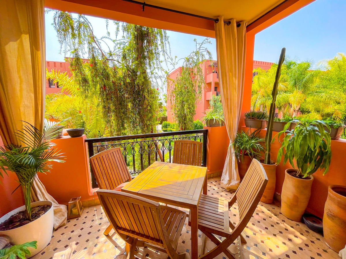 Looking for an unforgettable stay in Marrakech? Discover our apartment in the heart of the Atlas Golf Resort, the perfect blend of comfort and relaxation: *2 bedrooms with King-size beds, including one suite *Modern living room with IPTV *Fully equipped kitchen *Charming garden-level space *Enjoy the refreshing Big pool and a children’s park. *Football pitch and Basket for your sporty moment. 📌 Book now for a warm and relaxing stay!