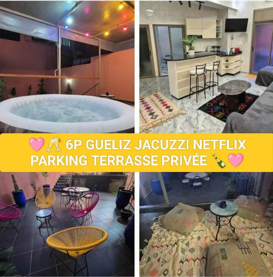✨️ EL Méhénni signifie La Sérénité ✨️ La promesse d'une parenthèse de rêve avec ce magnifique appartement en plein centre de Marrakech, dans le quartier prisé de Guéliz. 95 m2 entre appartement , patio et terrasse entièrement privés ! Jacuzzi chauffé en permanence. Idéalement situé, il offre un accès facile à tous les commerces, restaurants, et cafés branchés de la ville, ainsi qu'aux principales attractions. 🩷 Café et Thé d'accueil offerts 🩷 airbnb.com/h/jaccuzzi-marrakech-gueliz