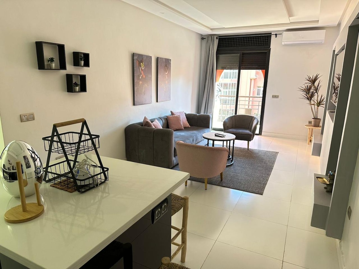 ✨Families & Marrakech - Elegance, space, and serenity Designed for families seeking comfort and refinement, this spacious apartment offers a chic and welcoming atmosphere. The bright living room invites shared moments, the elegant bedroom ensures peaceful nights, and the functional dining area makes everyday life with children easier. Located in a quiet neighborhood, this fully equipped apartment is a true premium haven for relaxing and discovering Marrakech at your own pace.