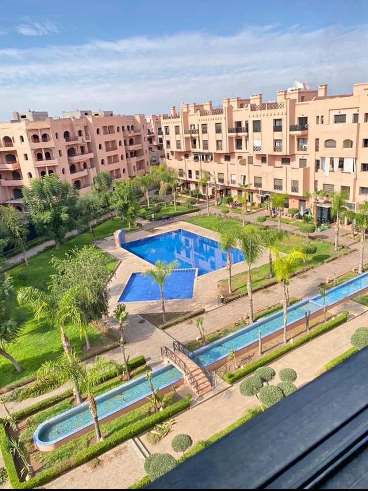 C’est en plein cœur de la célèbre palmeraie village de Marrakech que se trouve notre joli appartement. Ce dernier, se situe dans une résidence calme et magnifiquement arborée de 40 hectares. Piscines et terrain de tennis sont disponibles. C’est l’endroit parfait pour se réunir entre amis ou avec de la famille pour partager des moment agréables dans un cadre relaxant . 10 minutes du centre ville de Marrakech. 20 min de l’aéroport Service ménage et cuisine disponible moyennement un supplément.