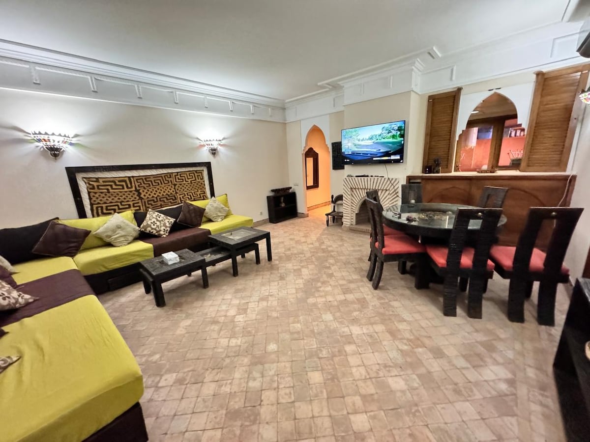 🌿 Riad privé, lumineux et spacieux au cœur de la médina. 5 chambres avec sdb privées, piscine au patio, grande terrasse et terrain de pétanque. Inclus : Gouvernante quotidienne Gardien de nuit Majordome 24/7 pour excursions, transferts, arrivées/départs Wifi rapide, climatisation, cuisine équipée, salons confortables. À 10 min de Jemaa el-Fna. Idéal familles, amis ou retraites.