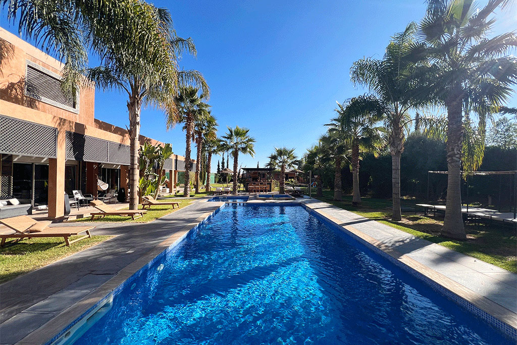 Dar Iklane : Une oasis de sérénité dans une oliveraie d’un hectare. Vous l'apprécierez pour ses grands espaces, sa piscine de 60m2 et sa terrasse panoramique. Sans oublier notre généreux petit déjeuner berbère, les délicieux plats de Aïcha, les bons produits de notre potager et la compagnie de Luna, Fluffy et Lucky nos trois caniches. Une base idéale pour visiter les environs de Marrakech, explorer la sublime vallée de l'Ourika et ses villages berbères ou s’aventurer dans le désert d’Agafay.