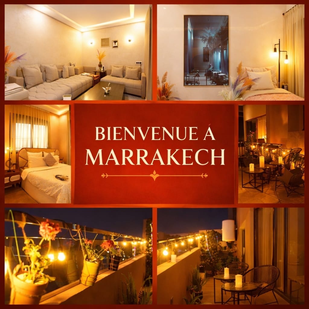 ☀️Meilleur Emplacement de la Ville ☀️ 🎯 Endroit stratégique de Guéliz, à proximité de tous les commerces et endroits importants de Marrakech : -10 minutes à Pied de JAMAA EL FNA🚶♂️🚶♀️ -12 min à pied de la Medina de Marrakech 🚶♂️🚶♀️ -5 minutes de Mc do guéliz.🚶♂️🚶♀️ Proche de l’aéroport ✈️ 🛌 Appartement de 3 chambres très spacieux, avec énorme terrasse de 50 metres carrés. Fibre très haut débit (100 mo), smart TV (netflix, et toutes les chaines du monde) 📺