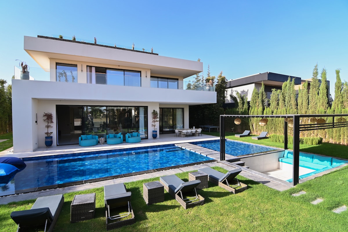 高尔夫球场内的别墅,带有恒温游泳池和按摩浴缸