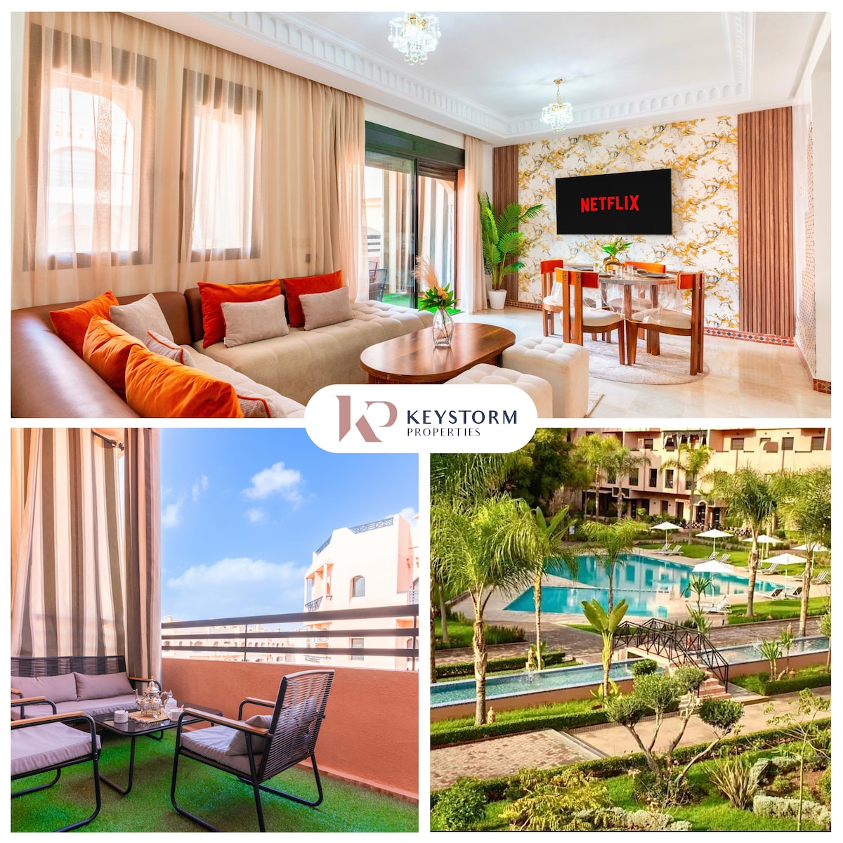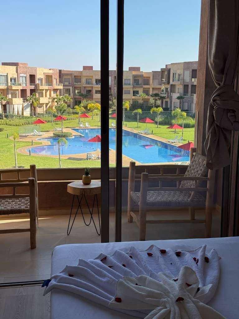 Séjournez en plein cœur de Marrakech dans notre appartement 2 chambres et 2 salles de bain. Profitez d'Une literie Simmons haut de gamme, WiFi haut débit (fibre optique) et d'une décoration moderne avec un bassin privé. Cuisine entièrement équipée, baignoire élégante, et douche italienne. À quelques pas de la place Jemaa el-Fna, du Plazza, et du Carré Eden. La piscine n’est pas chauffée. NB: Les couples marocains non mariés ne sont pas autorisés.