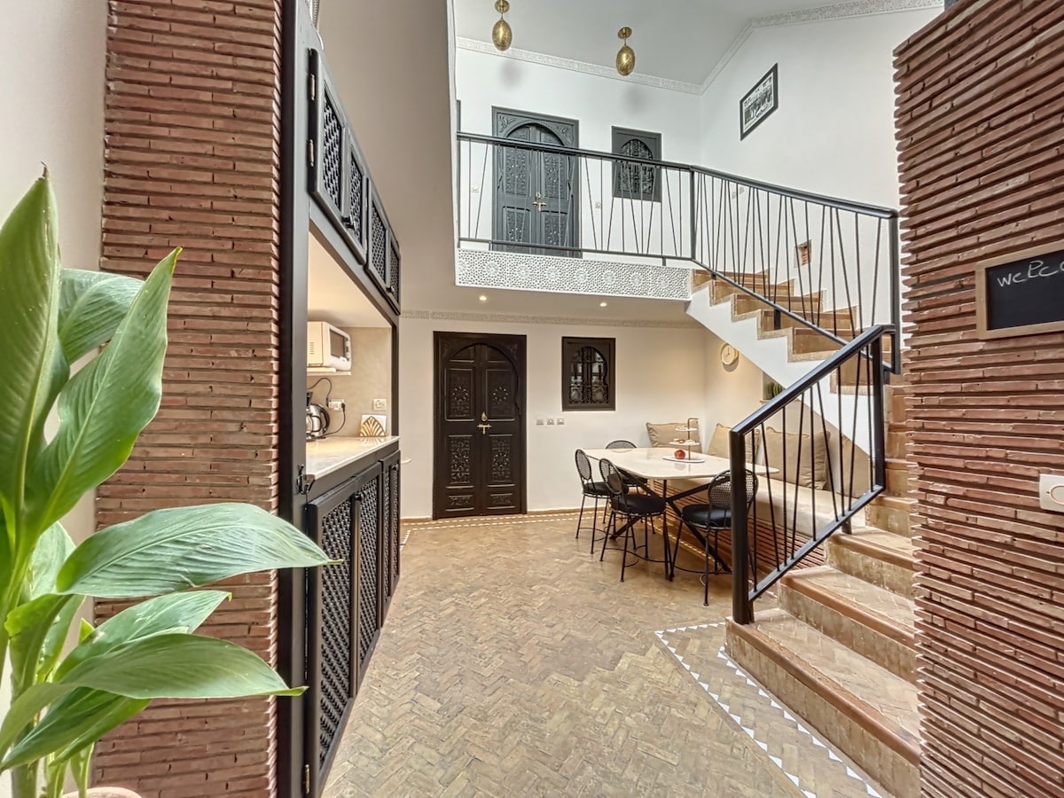 ❤ ☆UNBEATABLE☆ LOCATION The Riad is located in the heart of the Medina, surrounded by the fabulous Souks, in a safe and welcoming neighborhood. The legendary Jamaâ-El-Fna Square is only 300 meters away. ❤ ENTIRE PLACE TO YOURSELF • 3 Bedrooms with A/C • 2 Bathrooms • Rooftop Lounge • Bright Patio • Equipped Kitchen ❤ HOUSE STAFF ON-CALL Myriem, the housekeeper, can prepare your breakfasts and personalized meals on request (additional charge). ❤ FREE CANCELLATION ❤ HI-SPEED WIFI