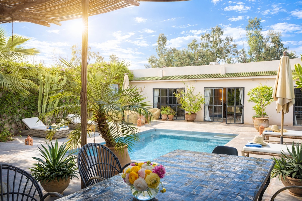 Découvrez Villa Majorelle, une villa marocaine entièrement privatisée située au centre de Marrakech, à 10 minutes de Guéliz. La villa propose 4 suites spacieuses avec salles de bain privées, une grande piscine au cœur du jardin, un rooftop aménagé et de vastes espaces de vie. Idéale pour les familles ou groupes jusqu’à 8 personnes souhaitant découvrir Marrakech tout en profitant d’une villa élégante et confortable.