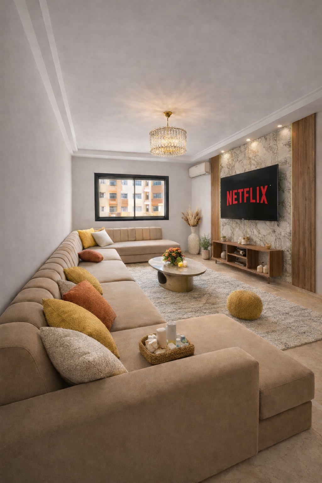 Enjoy an elegant experience at this centrally located accommodation, in the heart of Gulize, close to everything. A few steps from Plazza Marrakech, McDonald's and ZARA. restaurant, cafes, shops, beauty salons, shopping centers, within walking distance 24-hour security + elevator Free parking air conditioning, refrigerator, oven, washing machine, coffee machine Living room smart TV, WiFi, YOUTUBE, NETFLIX etc... American cuisine - A bedroom, 50 m2 floor space