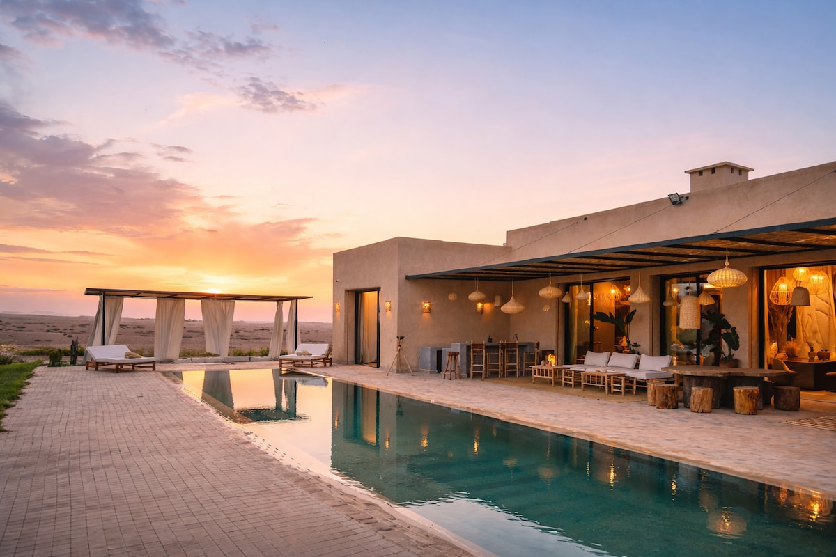 ● 3 min – Famous & Waky Beach ● 5 min – Aqua Mirage, PalmGolf ● 7 min – Bd Mohamed VI, Mégarama, Kart Racing ● 8 min – Al Mazar Mall, Oasiria and Pickalbatros Aquapark ● 20 min – Jemaa El Fna, Airport & City Centre ❤️ Features & Amenities: ● 450 m2 property ● Smart TV + Netflix ● 3 Queen Beds | 2 Modern Baths ● AC & Heating ● Fast Wi-Fi ● Private Heated Pool & Garden ● Fully Equipped Kitchen & Nespresso Machine ● Washing Machine ● Free Private Parking ● Prime Location ● 24/7 Secured Residence