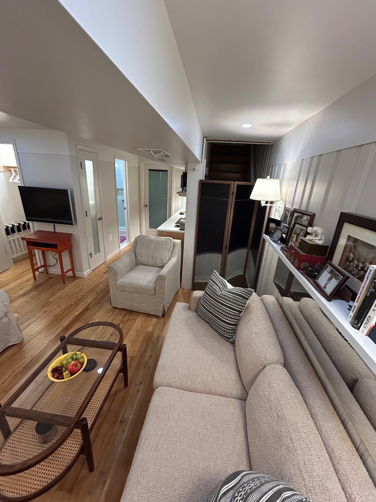 Spacious lower level studio with private entrance and complimentary off-street parking. Centrally located in a quiet, family-friendly neighborhood a 5-minute walk to the Huntington metro. The studio features a queen size bed, daybed, walk-in shower, coffee bar with a Keurig machine, microwave, dedicated workspace, and a sizeable closet. Additional amenities include high-speed Wi-Fi, hair dryer, iron and ironing board, 50" LED smart TV, toiletry kit, bottled water, and K-cups.