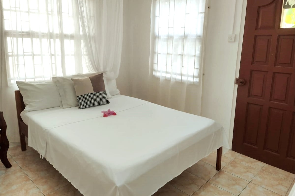Located in a quiet residential area offering safety, a private entrance, and a breezy atmosphere. You are 8 to 15 mins drive from the town of St. George, beaches, malls, bars and restaurants. Bus routes, historical sites and supermarket just a short walk away! Perfect for solo travelers, nomads, couples, friends and small families. Approx Distance (via Taxi/Car): 📍 8 mins to Capital & Port Louis 📍15 mins to Grand Anse 📍1 min to bus routes 📍1 min to supermarket, deli, and pharmacy.