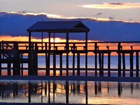 切萨皮克湾海滨日出和钓鱼码头!