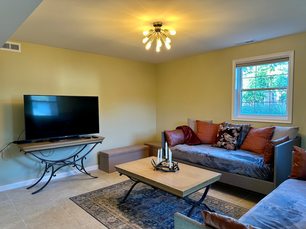 Relax and unwind at this peaceful and charming retreat, nestled in a quiet neighborhood. Located just minutes from Route 50, I-95, and Downtown Annapolis, Garden View is ideally situated for exploring Naval Academy sports, the Renaissance Festival, Boat Shows, and golf at The Preserve. If you prefer staying in, the fully equipped kitchen and free Wi-Fi make it easy to work or cook from the comfort of your space.