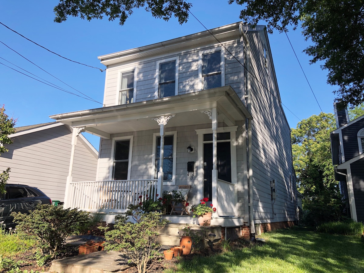 Enjoy comfortable elegance in this historic beauty on one of the prettiest streets in Downtown Annapolis--Main Street and the Water only 2 blocks away. This private unit is the full main level with its own eat-in kitchen, living room, front porch and back patio. Bedroom features queen size bed, dresser and walk-in closet. Bathroom has shower/tub and counterspace for your comfort. Street parking is available or public garage parking is a short stroll away. Relish this quiet & convenient location.