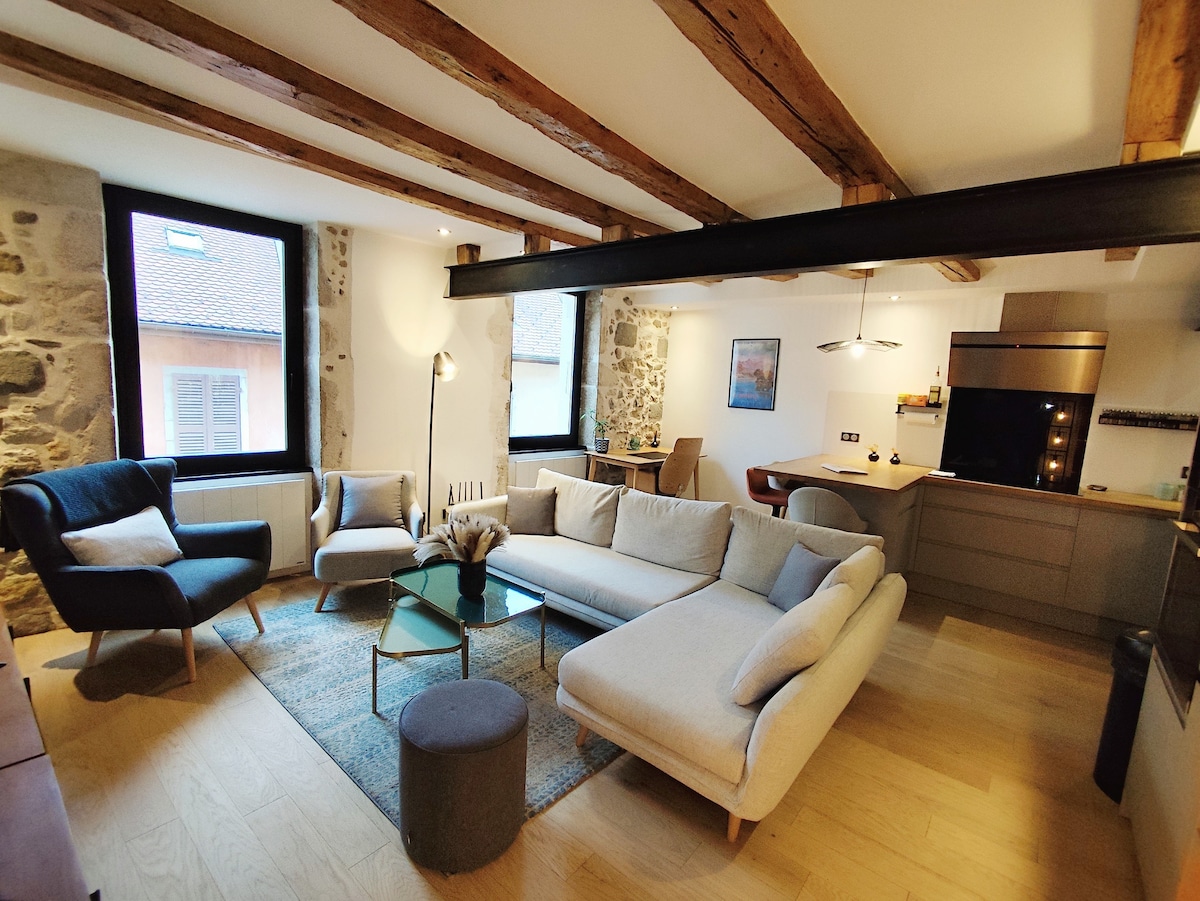Hello 👋🏼 My apartment is in the old town. It's close to the train station and the city center. Annecy is small, so you can easily access the lake from my place. You'll appreciate the comfort, space, location, decor, and old-world charm combined with a modern style, especially the Lego kitchen and exposed beams. Ideal accommodation for a couple who want to enjoy Annecy's old town while being close to the lake. The Saint-Clair parking lot is a 150m walk away. The train station is 500m away.